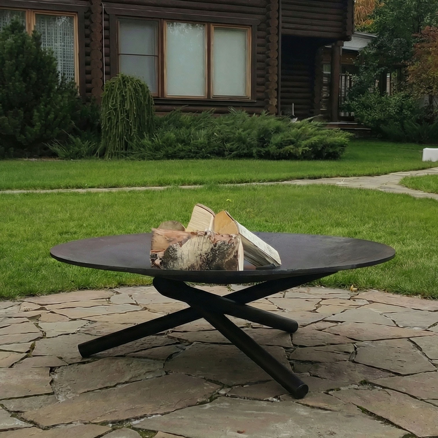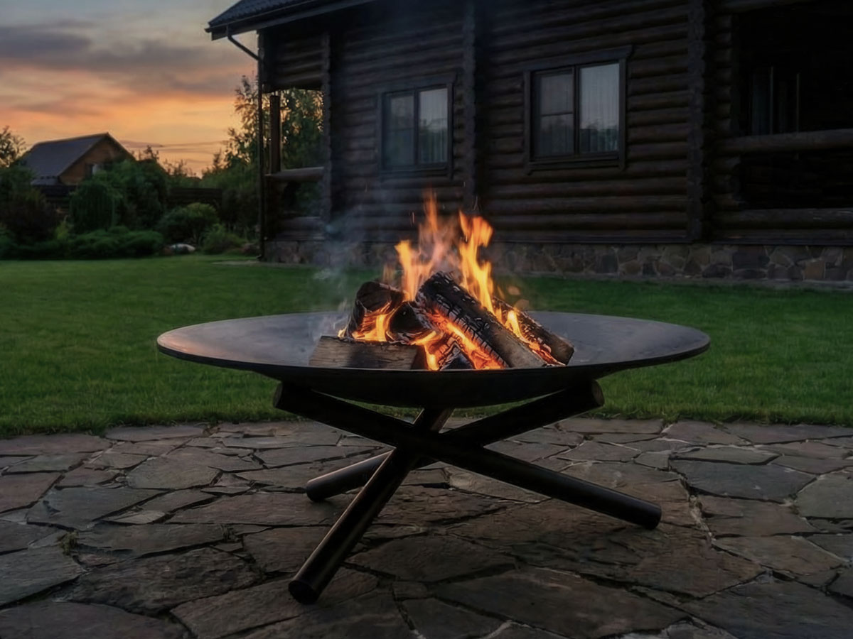 - Если Вы планируете поставить очаг на террасе, деревянные поверхности или на газоне, то лучше выбрать чашу на высокой подставке. Это связано с тем, что металл сильно нагревается и может повредить поверхность террасы или траву.