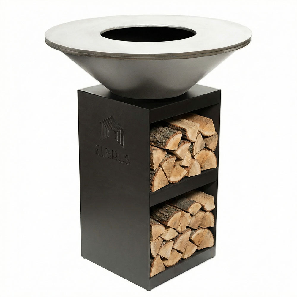 Гриль-очаг Казбек - самая популярная модель. Поленница, разделённая полкой, позволяет складывать дрова, инструменты и аксессуары. Отлично подходит как для выездных обслуживаний, так и для загородных участков.